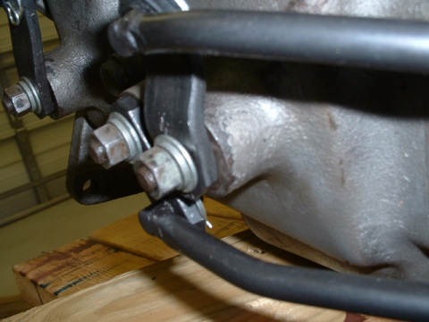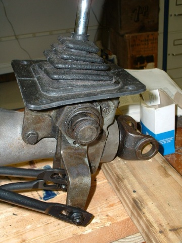 The shifter link bends too quickly down to clear the boss, so I had to use a little persuasion and a bench vise to bend it so it would clear.