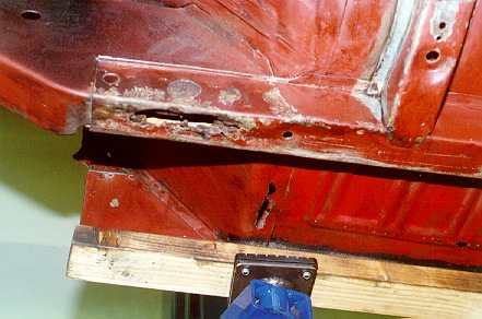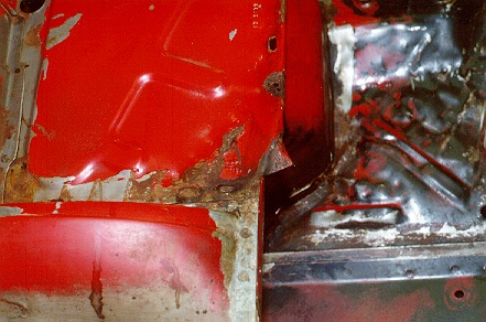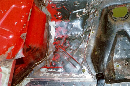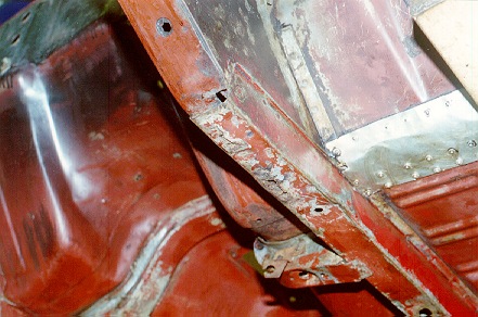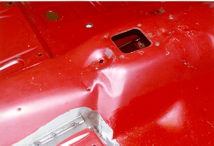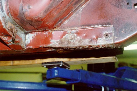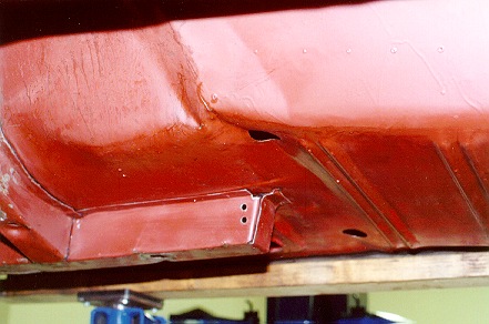 The accident also caused some damage to the undercarriage, buckling the tranny tunnel some and the floor pan under the seat riser.
